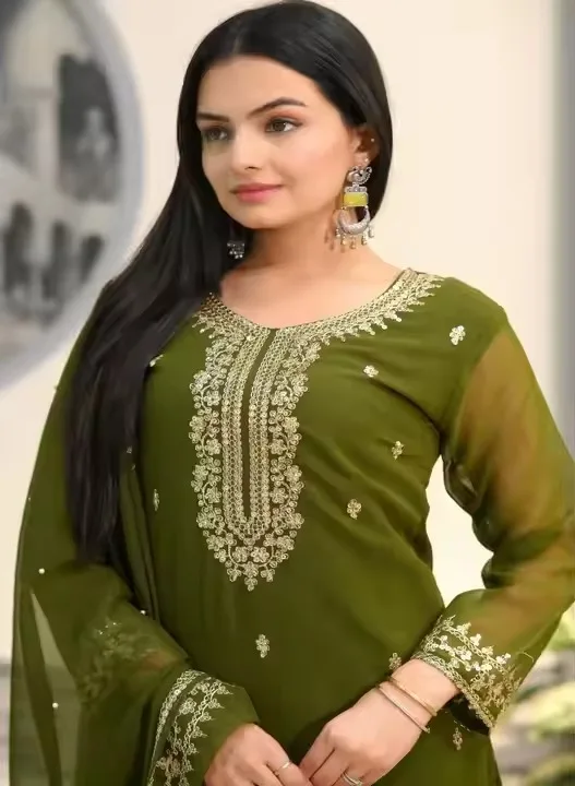 Designer Bollywood Style Faux Georgette Salwar Kameez for Women Embroidered and Sequin Detailed Indian Pakistani Party Outfit